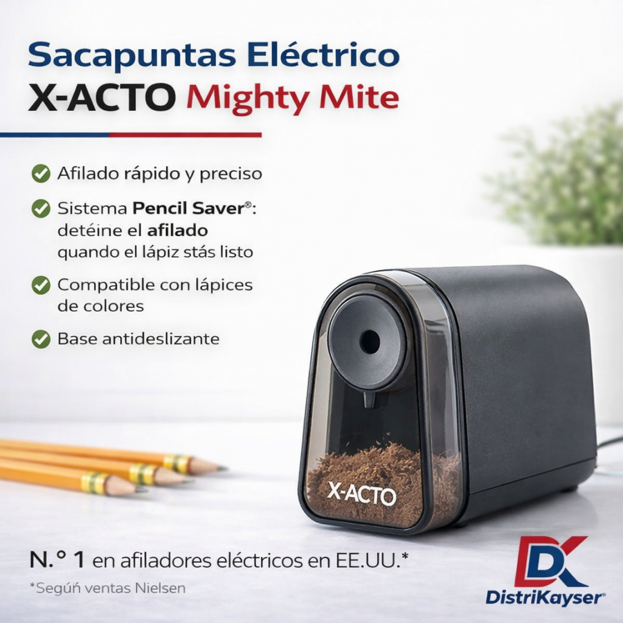 ajalápiz eléctrico automático ideal para oficinas, colegios, papelerías y uso profesional. Diseñado para ofrecer un afilado rápido, preciso y sin esfuerzo, este sacapuntas eléctrico permite mantener los lápices siempre en perfecto estado con solo introducirlos.